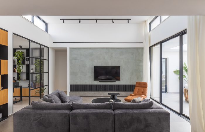 Τα ανοίγματα είναι διακριτικά και στρατηγικά τοποθετημένα ώστε να εξασφαλίζουν άπλετο φυσικό φως στο εσωτερικό, χωρίς να διαταράσσουν την καθαρότητα των όψων. Η είσοδος σηματοδοτείται με διακριτικό τρόπο, ενσωματωμένη στη συνολική σύνθεση, προσδίδοντας αίσθηση ιδιωτικότητας.